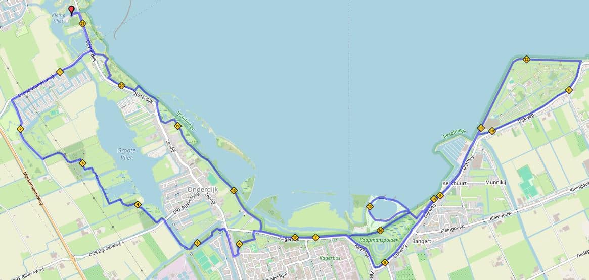 Het parcours voert over verharde asfaltpaden, maar ook over onverharde (schelp- of gras-) paden.